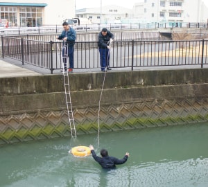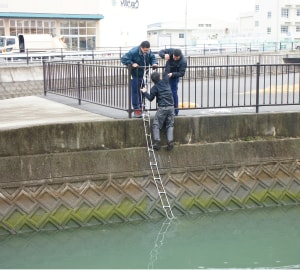 港湾・漁港また河川・ダム等の水際施設において、安全対策として救命器具が設置されています。しかし、救命浮環などは、外部にそのまま固定されてされていることも多く、器具の痛みや、いたずらの懸念がありました。そこで救命活動に必要な器具を専用BOXに収納しました。