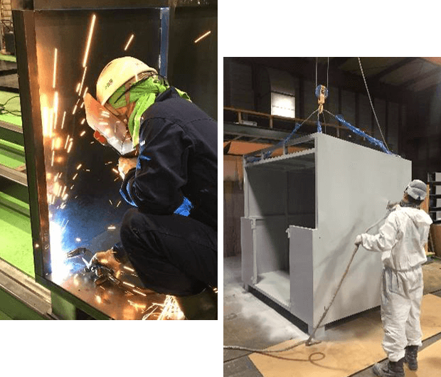 ▼溶接と塗装のプロによる作業