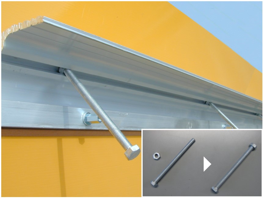 - スライド式アンカーを定位置に固定、つき合せ部はジョイント金具で固定します。