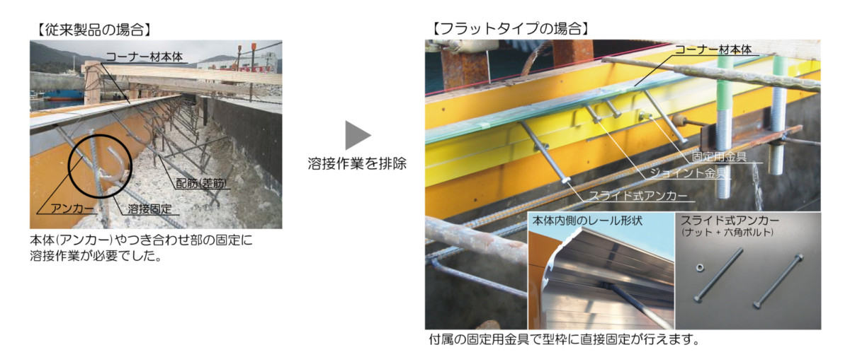 本体を型枠に直接固定することができるため現場での溶接作業が不要になり、作業性の向上が図れます。