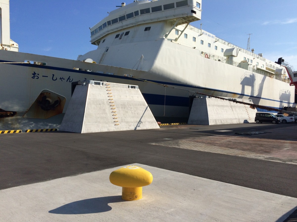 岸壁際にはコーナー材ノーマルタイプ、車止めはコラムストッパーが設置されています。