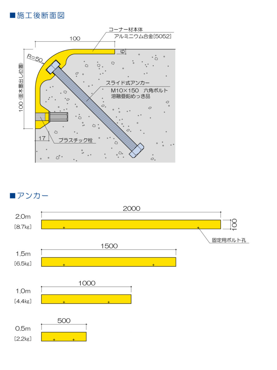 フラットタイプは、ガントリークレーンのレール保護や防障壁角部の保護などに使用する先施工タイプの製品です。