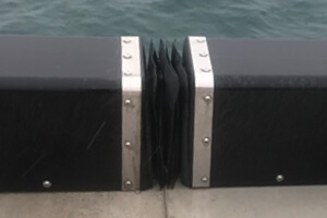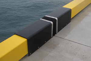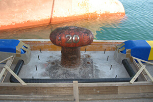 多くの岸壁では係船柱前方はすき間を設けて車止めが設置されていますが、車止めに管を内蔵させる場合は係船柱箇所も縁を切らずに設置する必要があります。
