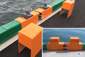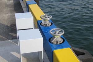 港湾における管の整備は、構造物への埋設もしくは添架する方法が一般的でありましたが車止めに内蔵させることで岸壁への設置が可能になり、施工性、メンテナンス性を向上しました。