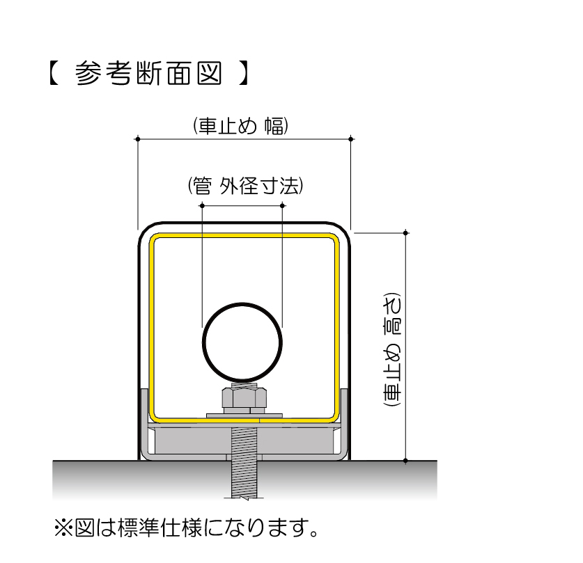 管や継手のサイズが大きく車止めの標準規格に該当しない場合は、特注の仕様にて設計及び製作が可能です。