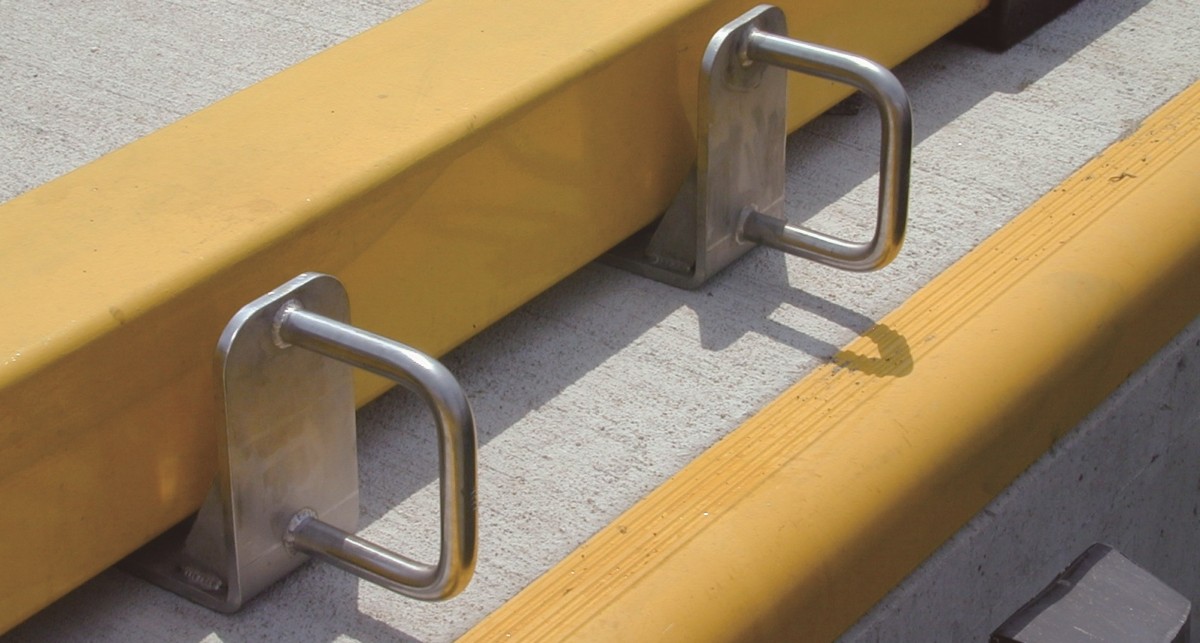 タラップの位置にあわせて、コラムストッパーの下の隙間に設置できます。 - コンパクトなサイズ感で、荷役の妨げにになりにくい形状!