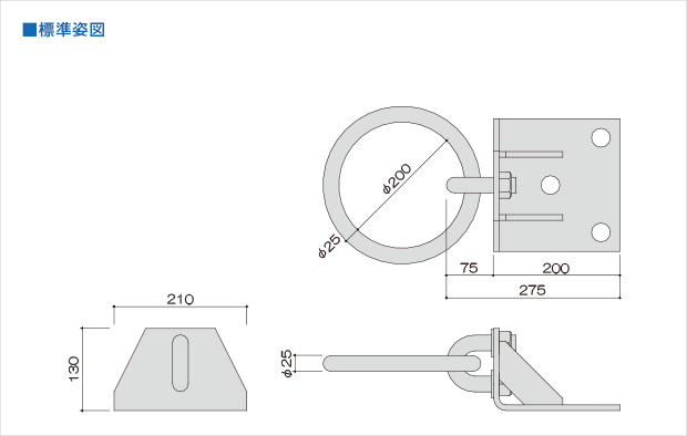 対象船舶にあわせて係船環のサイズなども変更が可能です。 - 車止めへの係船ロープの引っ掛かりを防止できます!
