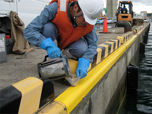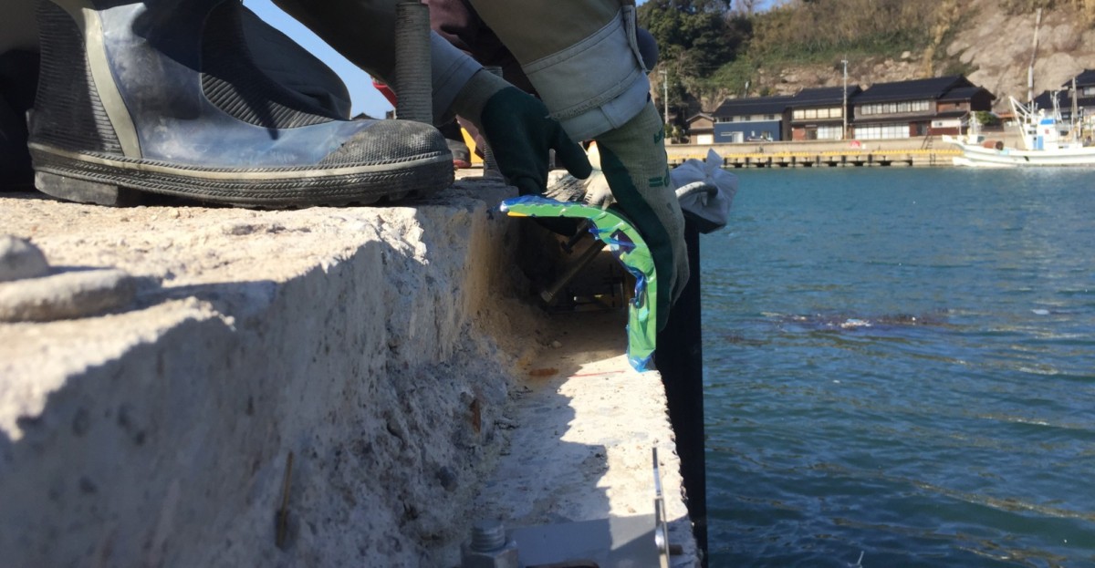 - 既存岸壁でスライド式アンカー固定用プレートのくる位置をカッター・ハツリで取り除く。