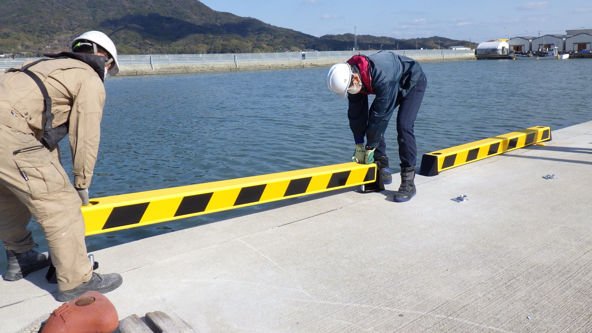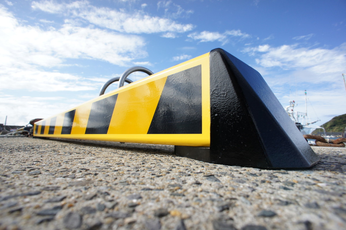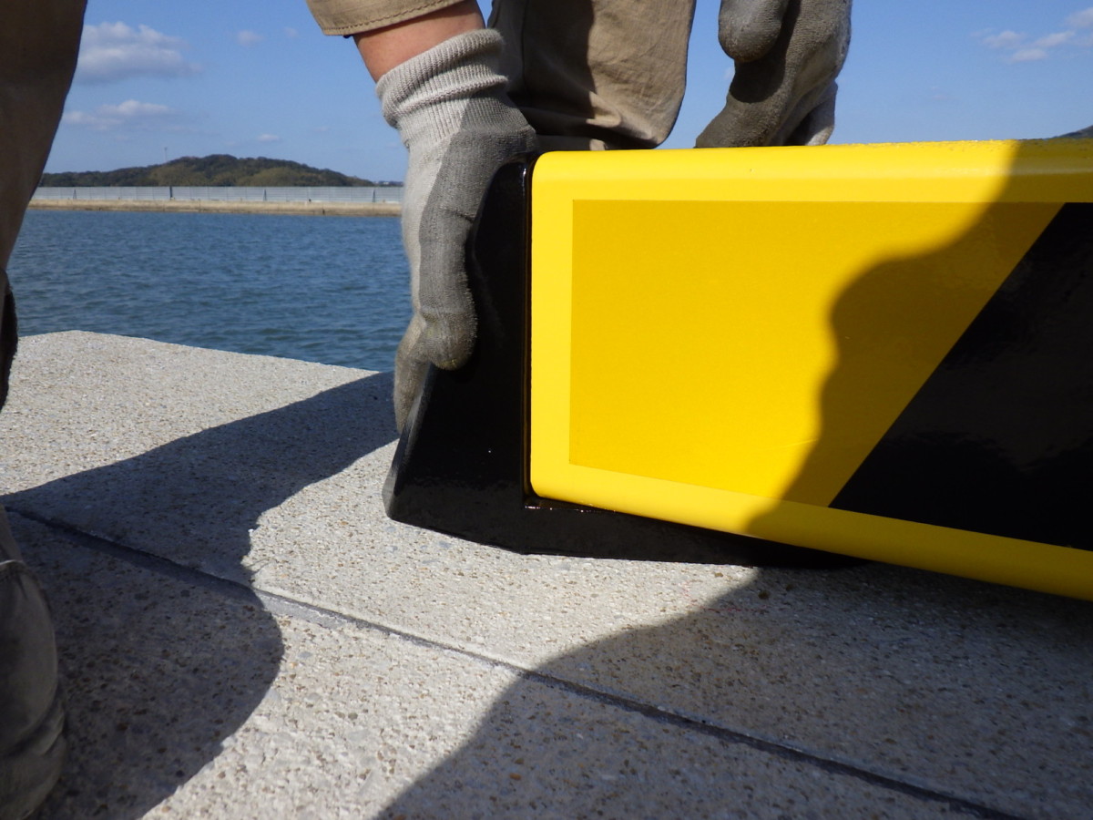 反射シールにより夜間の視認性にも配慮しています。 - 端部の傾斜形状による係船ロープの引っ掛かり防止!