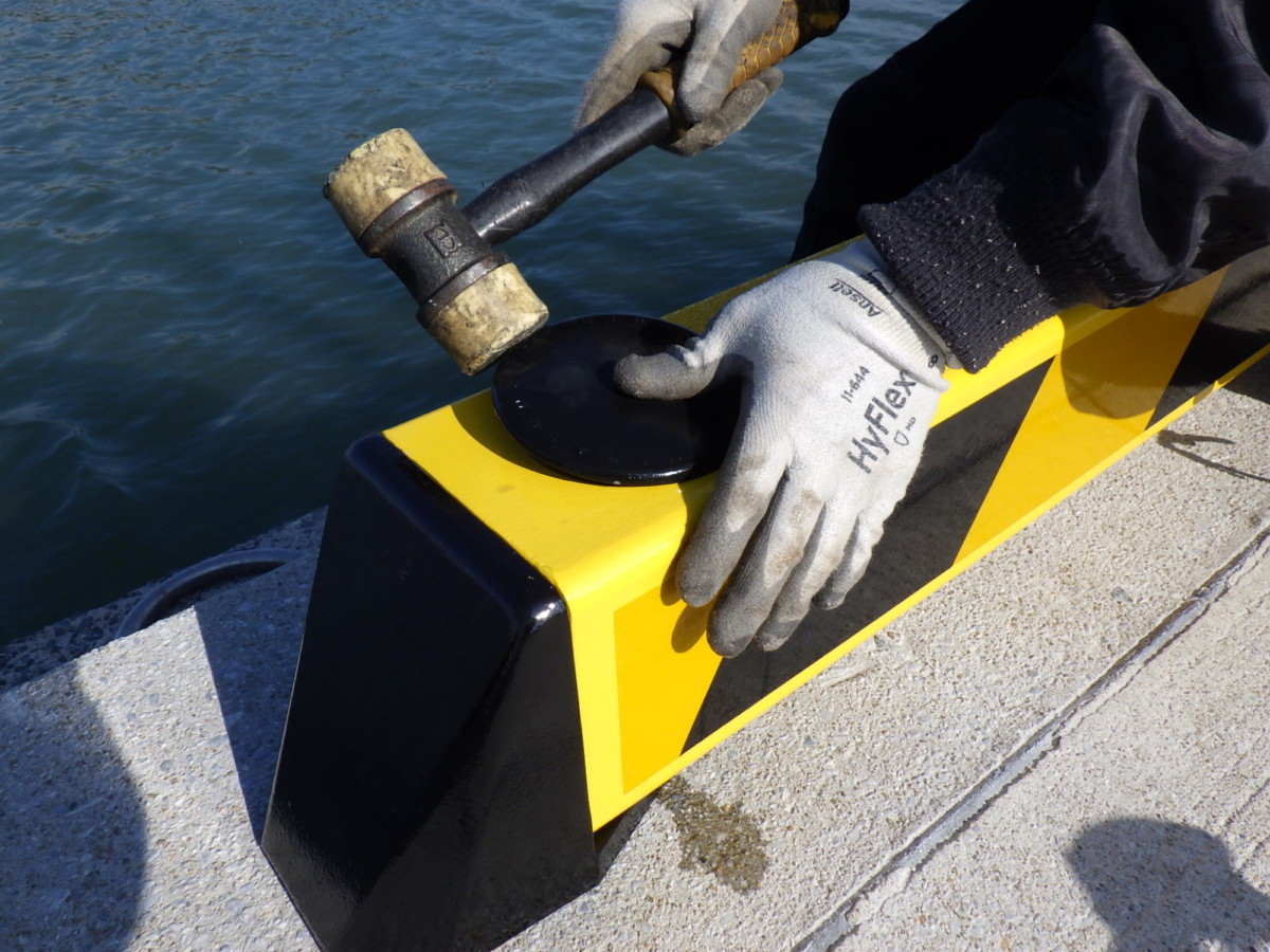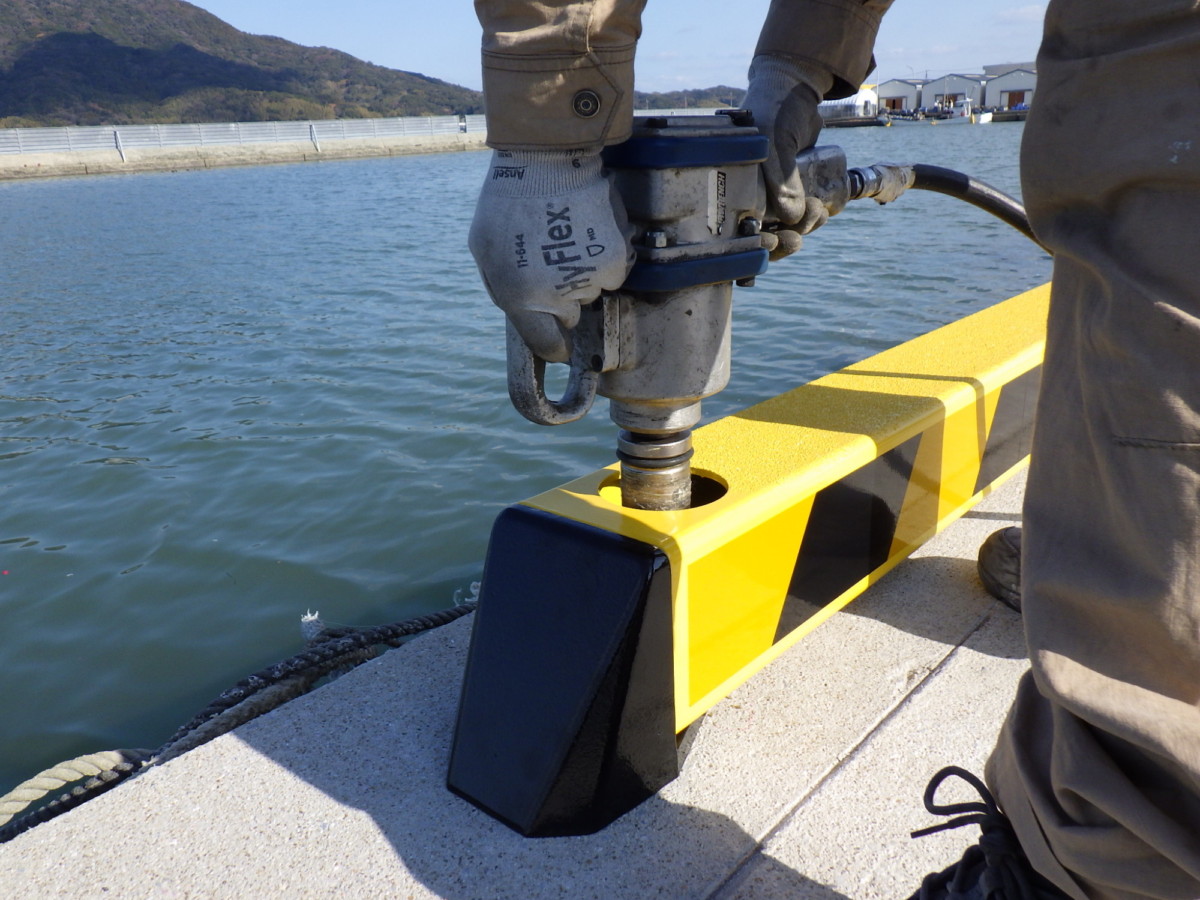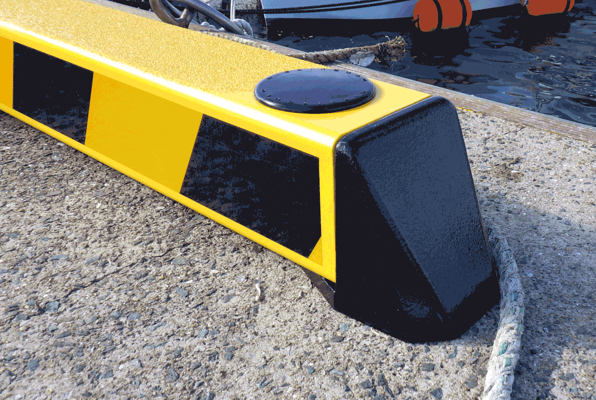 反射シールにより夜間の視認性にも配慮しています。 - 端部の傾斜形状による係船ロープの引っ掛かり防止!