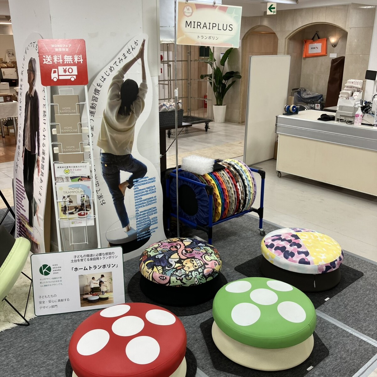 トランポリンとしてだけではなくオットマンやスツールなど、様々なシーンに対応できます。 - 障がい者アーティストのデザインイラストを含めた、こだわりの製品ラインナップ。