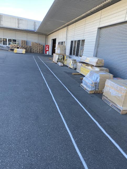 最近、工場前に2本線を引きました。