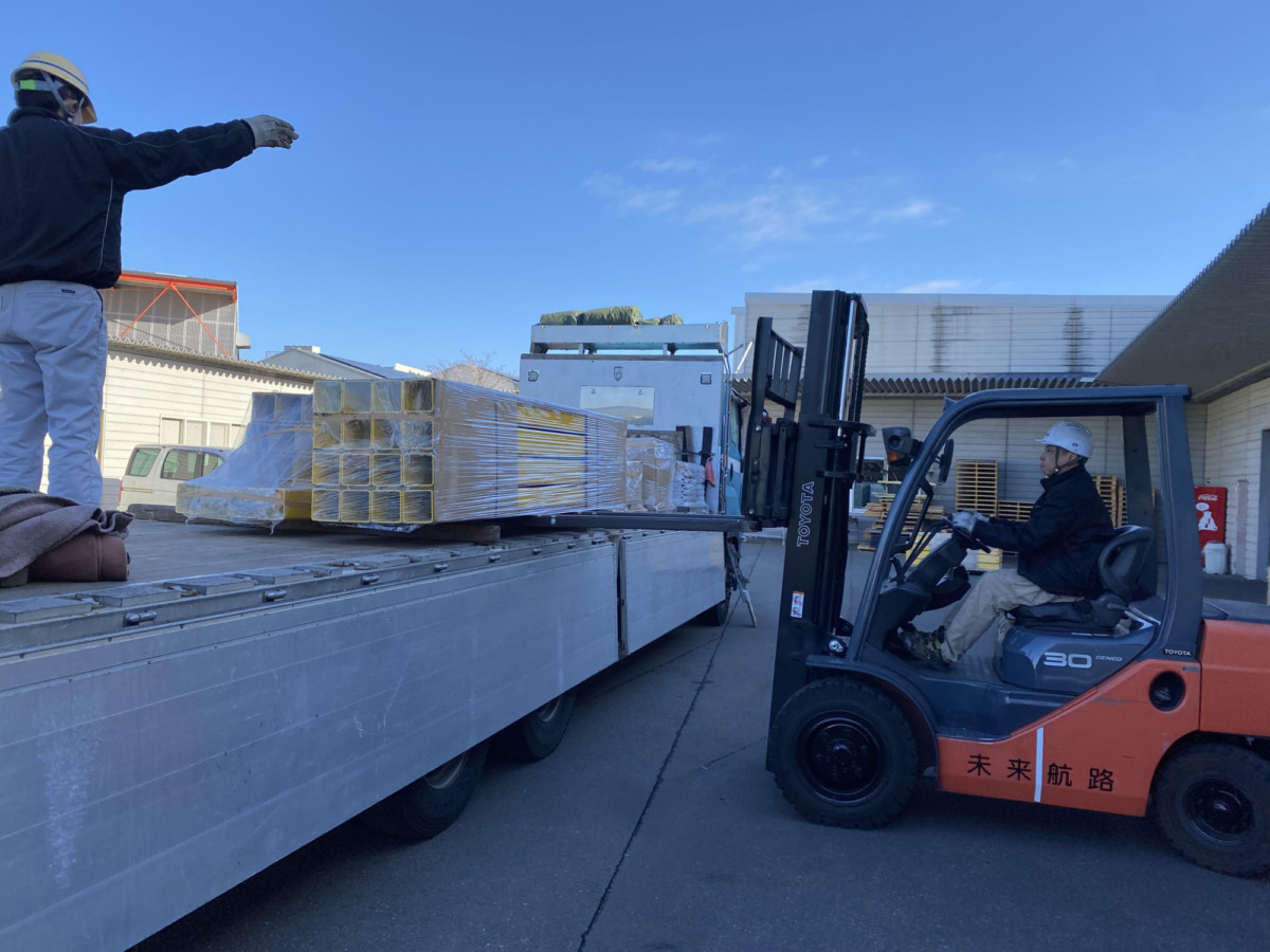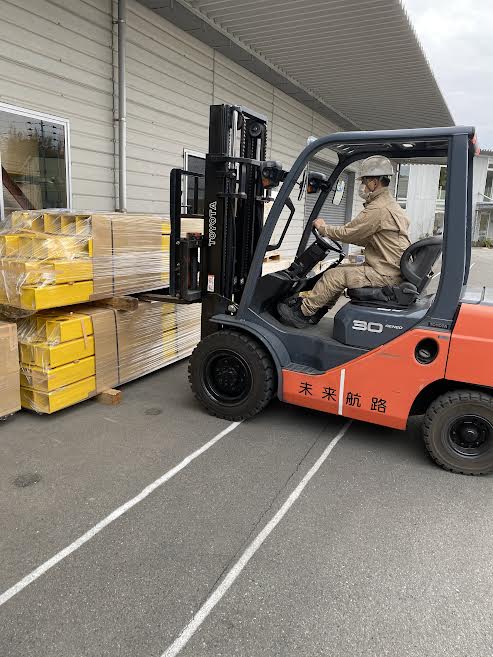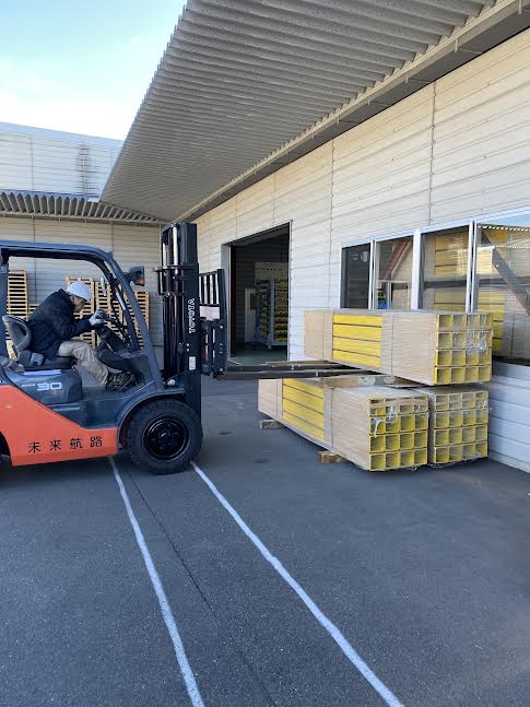 これをフォークリフトで持ち上げるのですが、目の前には工場の壁!