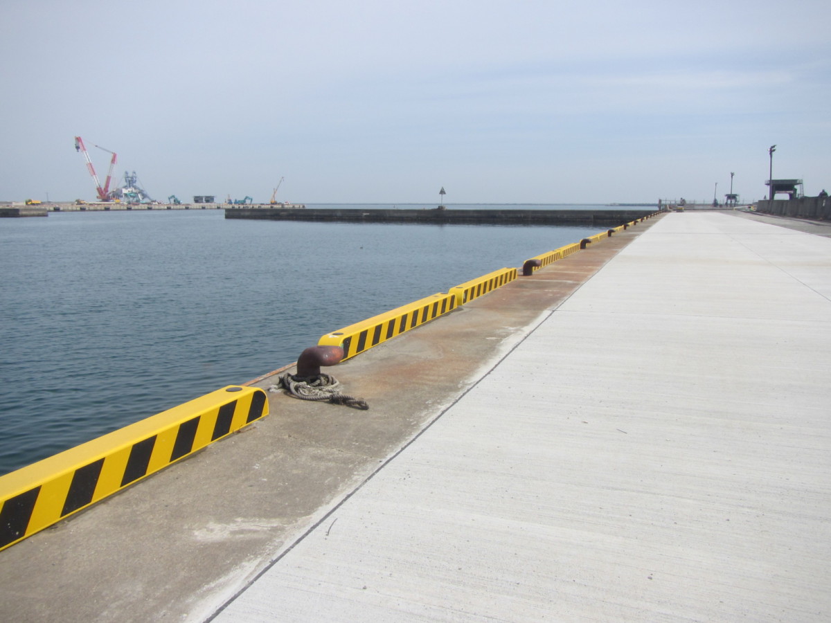 今回は係船柱が岸壁法線より離れた場所にあることから車止めは係船柱前で縁を切らずに一連で
