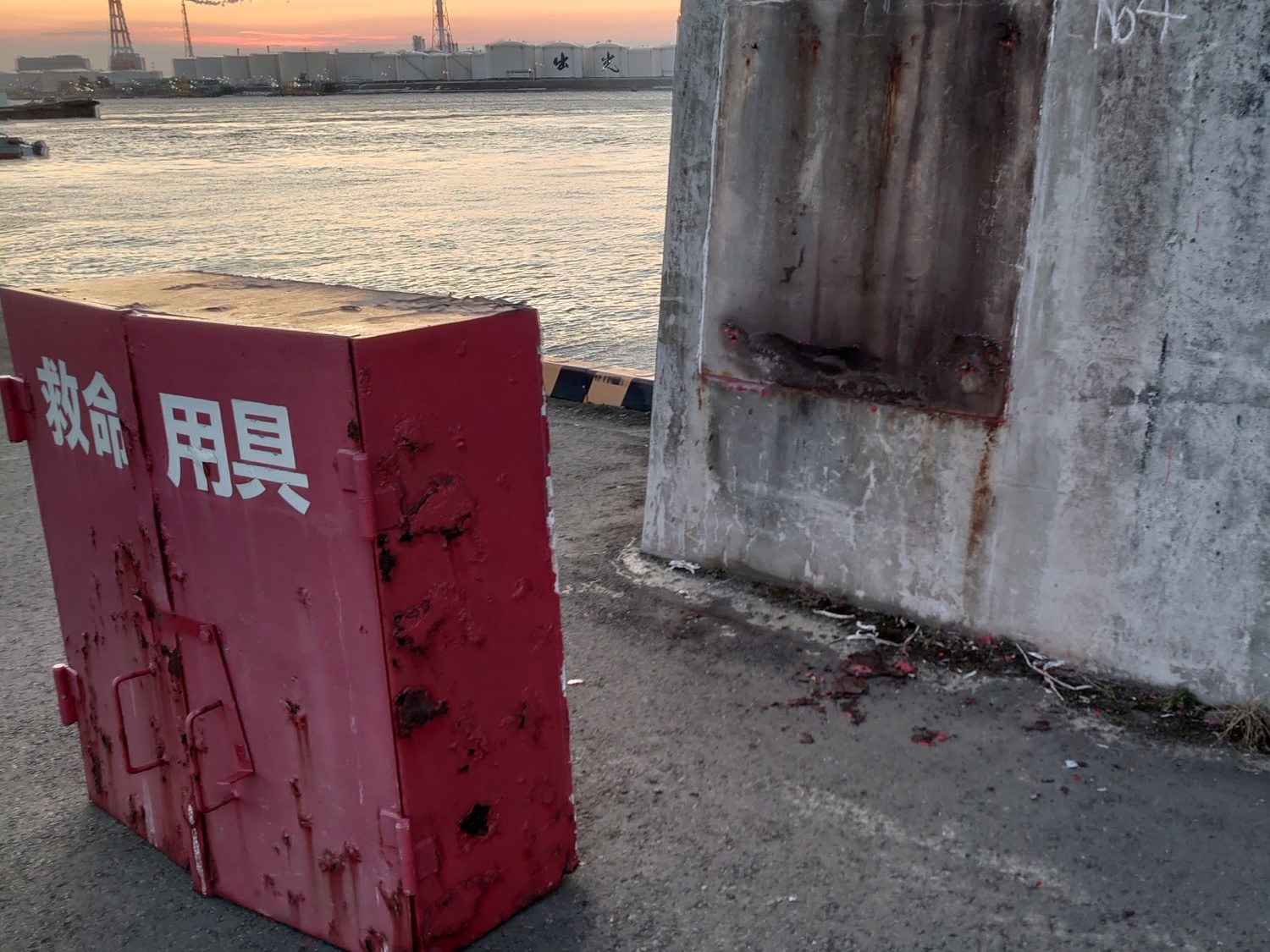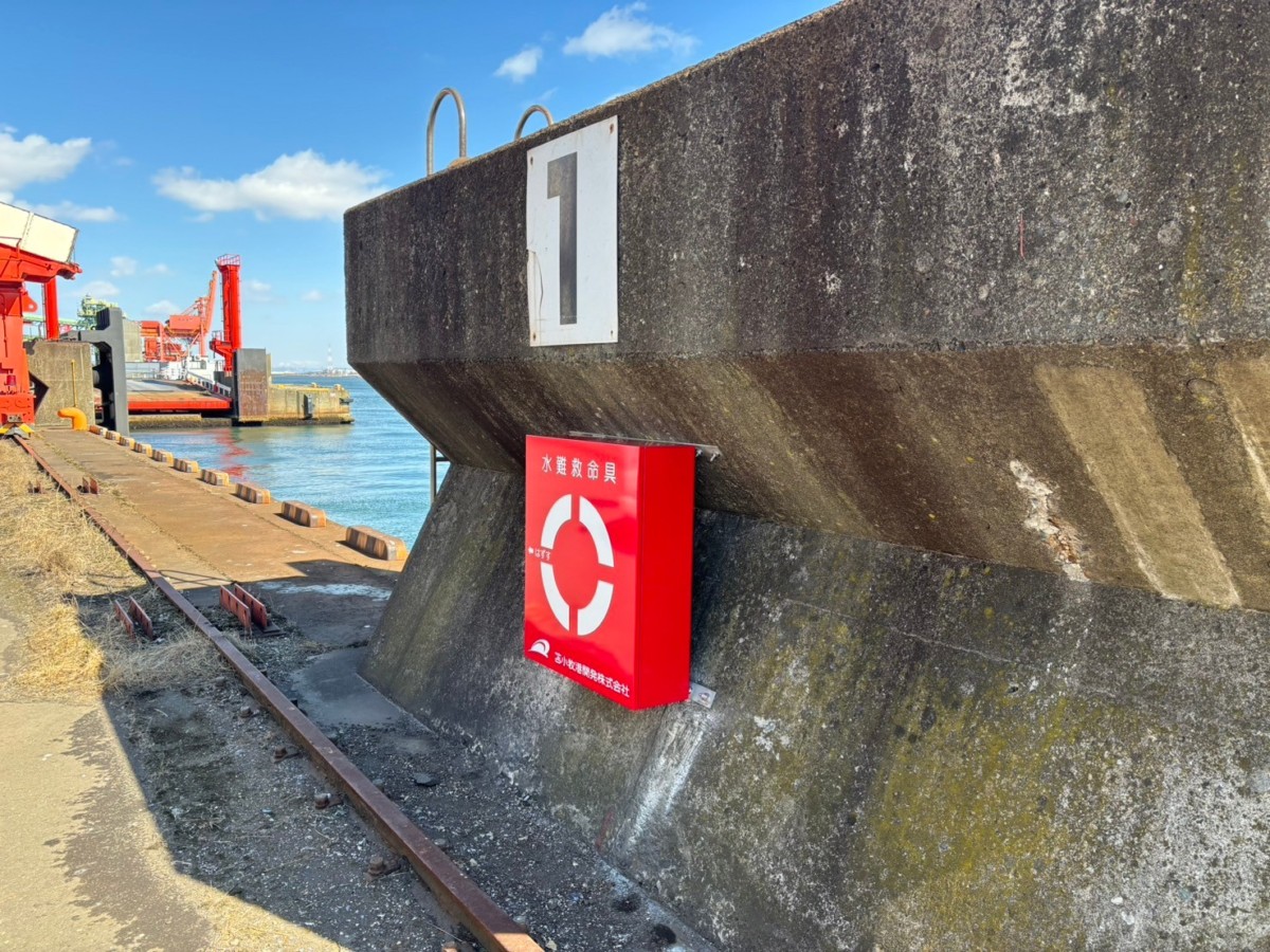 約50年前、岸壁が整備し運用されるなかで、作業者様への安全対策として設置された救命用具も、有事の際に適切に使用出来るように