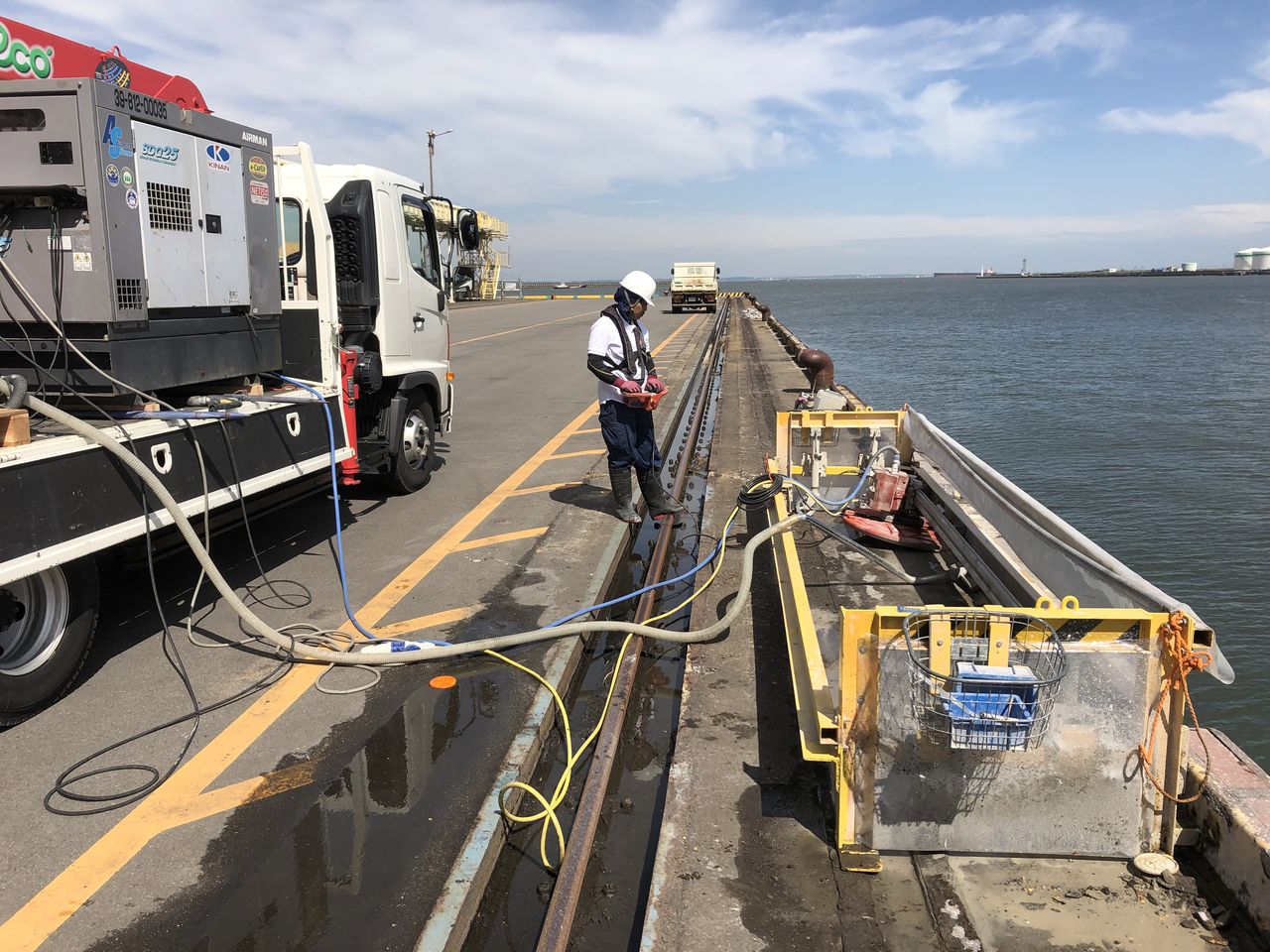 明日も船が接岸するためバリケードをしています。最後に回収する予定です。