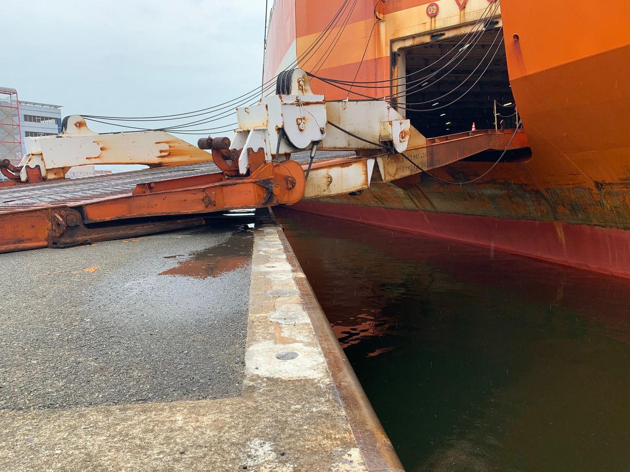 これは、干潮時にはランプウェイが車止めに当たって作業の妨げになるな~。