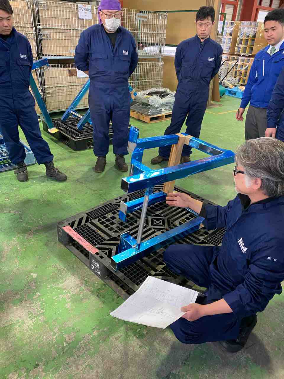 このハシゴは初めての製作だった為、製作の際に難しかったことなど意見が飛び交い、他部署を交えて、今後はこうした方がよい、この方が早く作れる…などなど、非常に有意義な時間となりました。