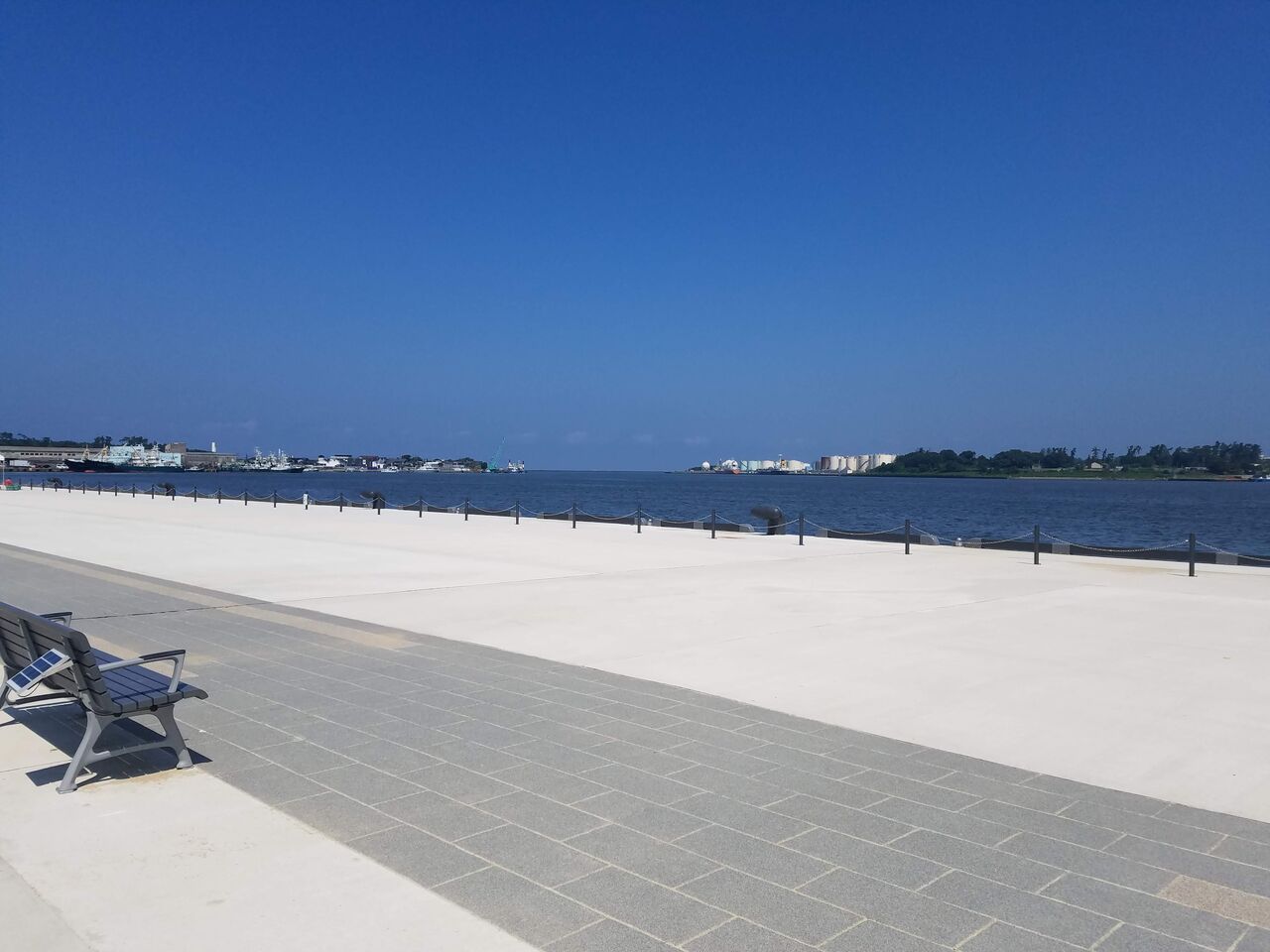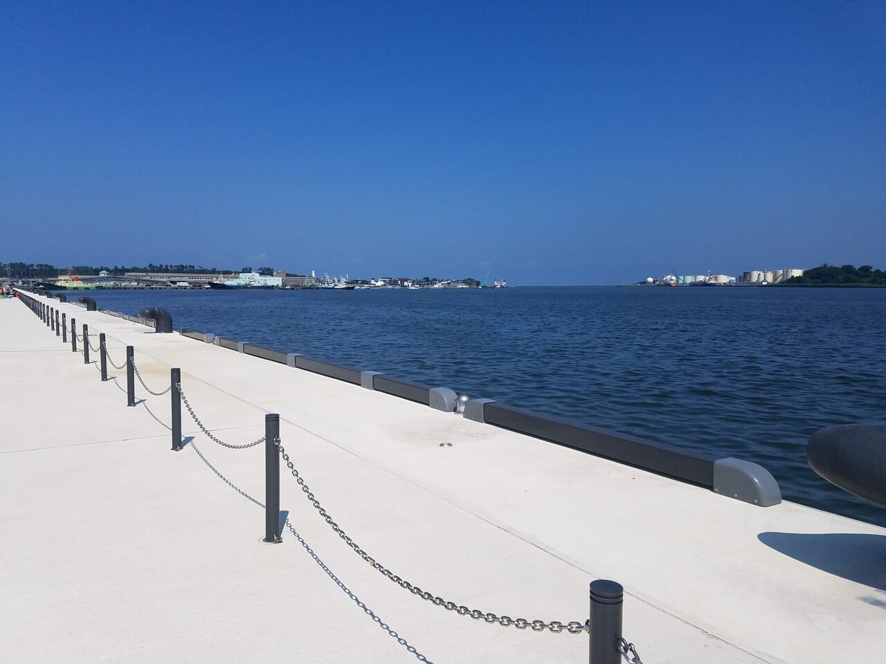 係船柱や柵と色が統一されており、おしゃれで落ち着いた印象です。