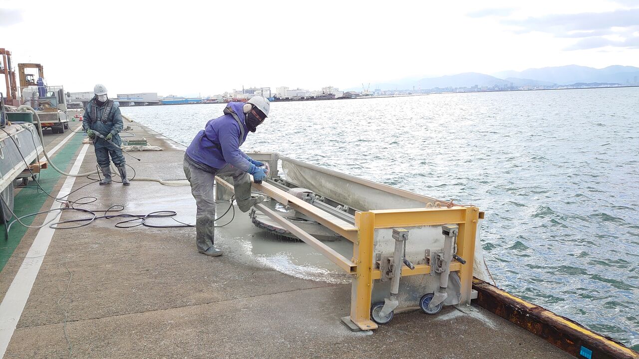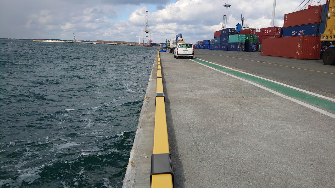 先日のブログにて紹介しました博多港の車止め撤去工事の現場に