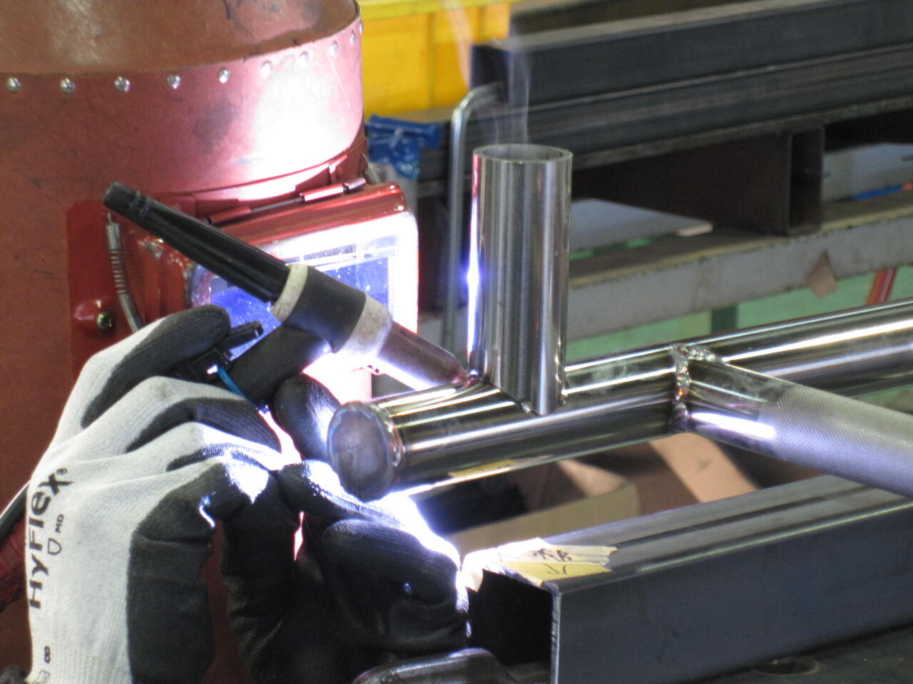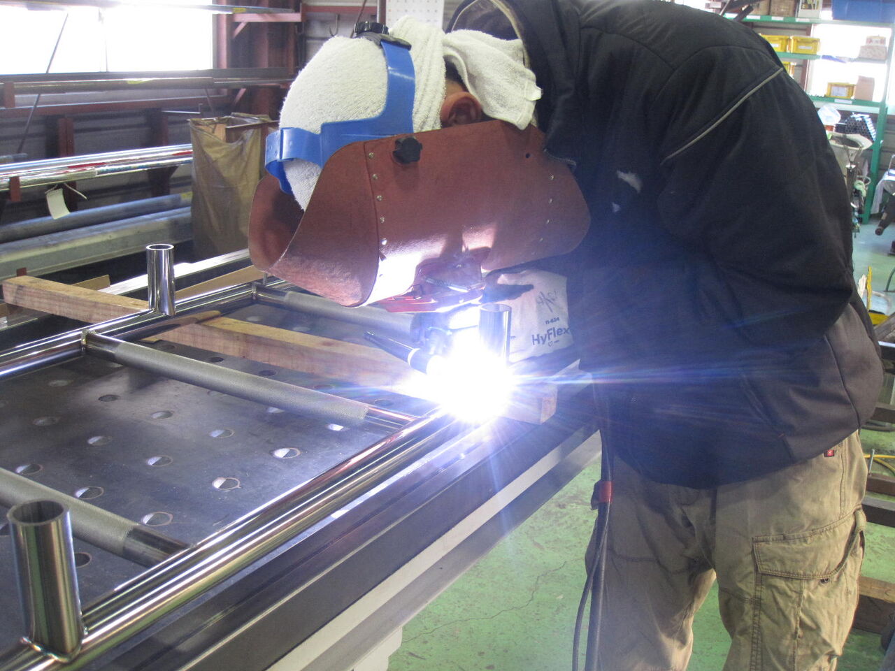 そこに足掛けパイプを飲み込ませて溶接する仕様です。