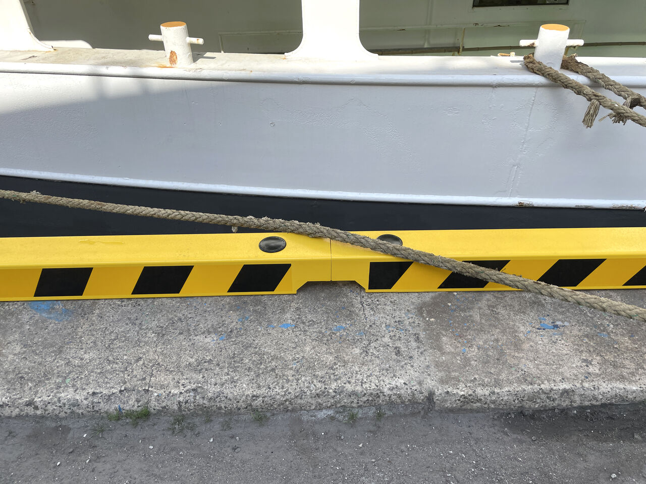 連続設置は係船ロープが車止めと車止めのすき間に落ちこまないためです。