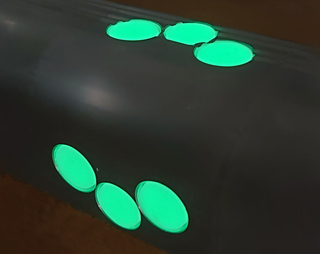 もちろん、コーナー材本体をくり抜いたスペースに畜光材を