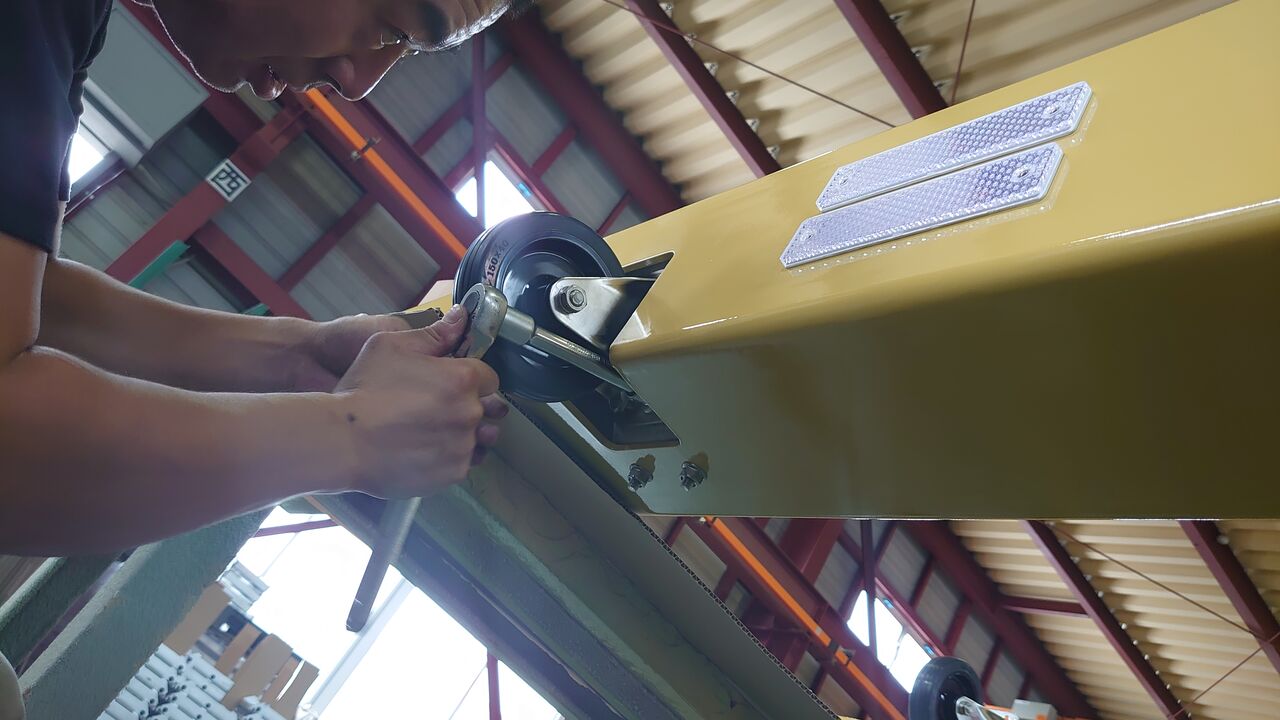 本日は可動式車止め人力移動タイプの組み立て風景をご紹介します。