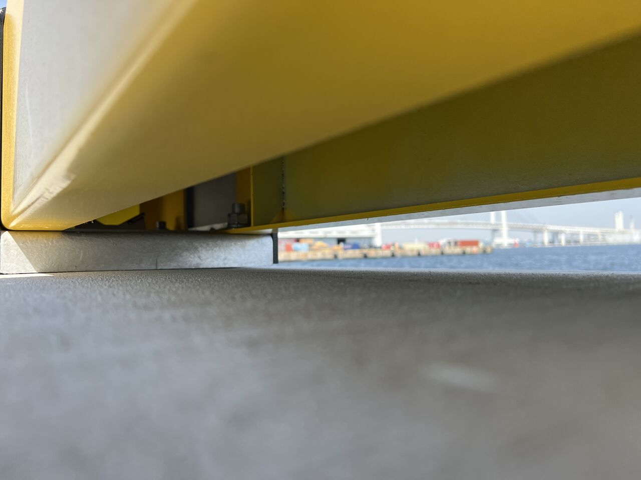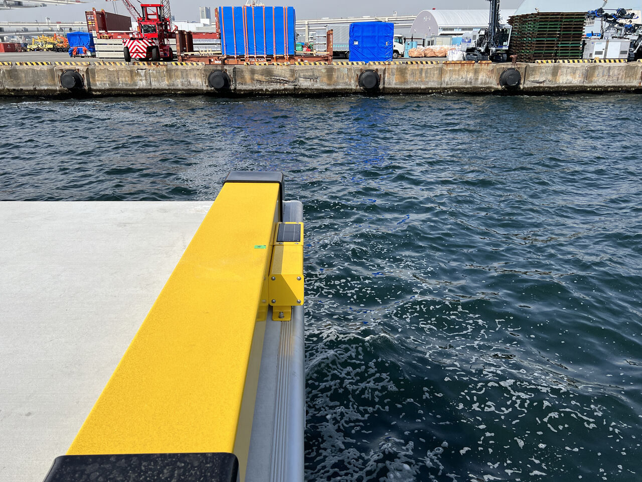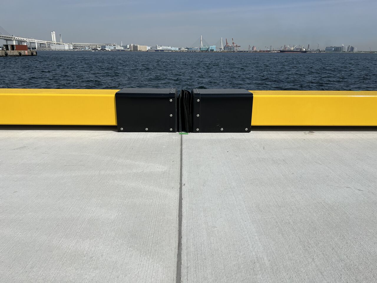 岸壁はジャケット仕様のためジャケット間はジャバラにて連続設置をしております。