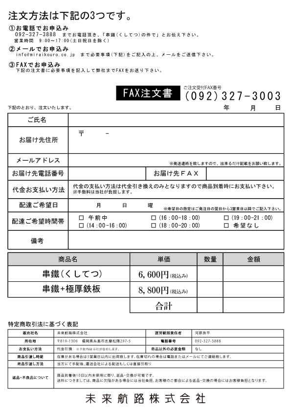 購入ご希望の方はこちらから⇩ご注文または当社までご連絡ください