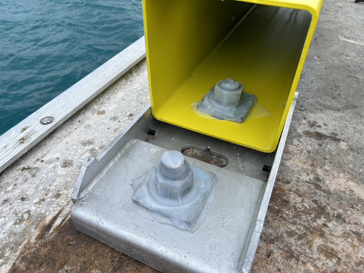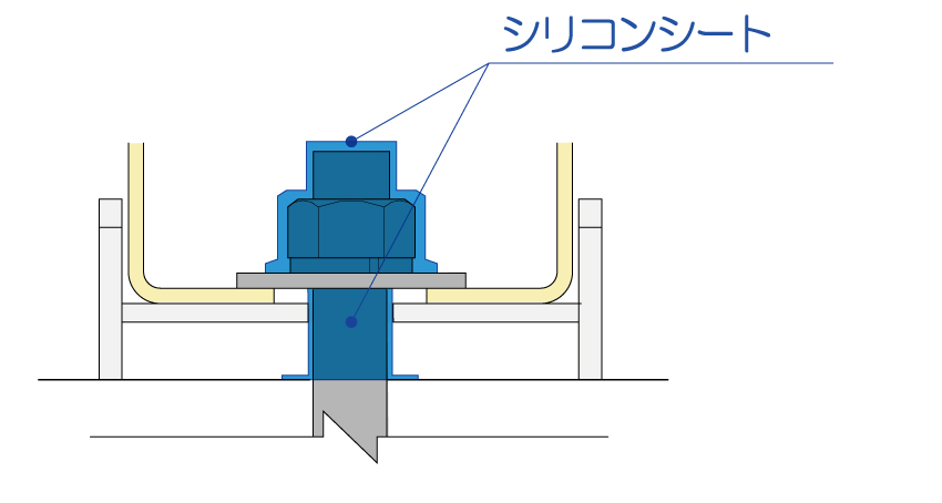 再設置の際に絞め込むナットが露出する箇所をシリコンシートで覆う工法となります。