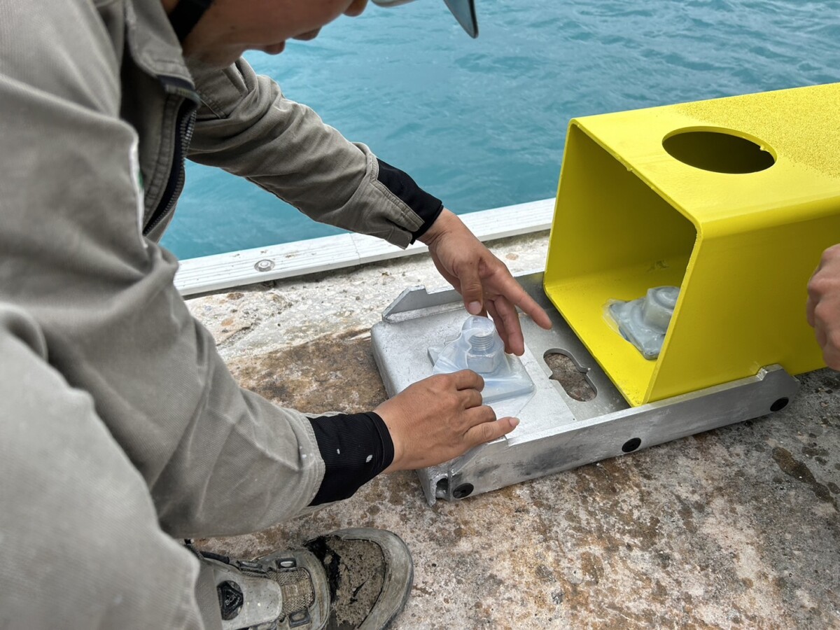 設置当時のアンカーボルトを外気に触れないように自己融着性シリコンで覆い、長寿命化を図ります。