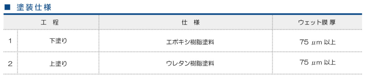 下塗りには、アルミニウム合金との密着性に優れたエポキシ樹脂塗料、上塗りには耐候性・光沢保持性に優れたウレタン樹脂塗料を使用しています。