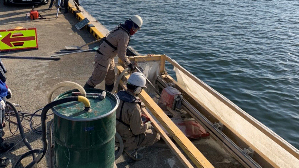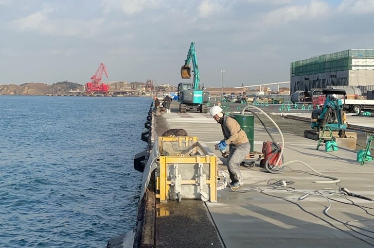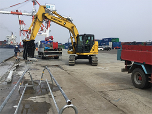 オペレーターによるリモコン操作でアンカーボルトの切断を行うため、岸壁際でのハツリや溶断作業をなくし、作業者の安全性向上と負担軽減を実現しました。