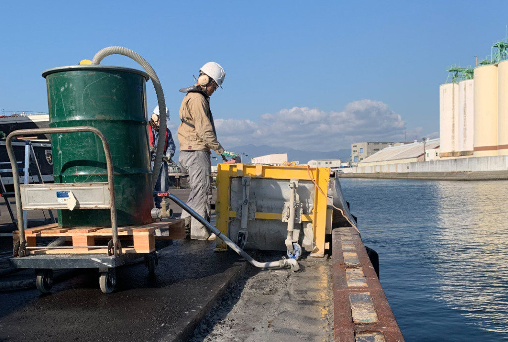 • 人力で機材を使い作業をする必要があるため、岸壁より落水しないよう注意が必要。